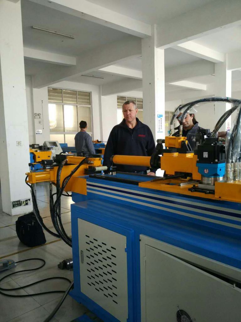 Australian customers come to the factory for acceptance and are very satisfied with our pipe bending machine
